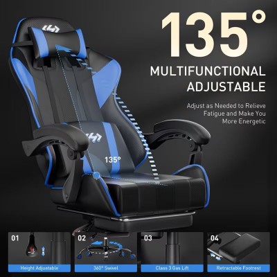 покрытие > бытовая техника > Местный складУдобное игровое кресло с 6-точечной поддержкой, откидыванием на 135°, игровое кресло для видео с независимыми карманными пружинами и хлопковыми подлокотниками, регулируемой шеей, искусственной кожей для офиса, игр, спальни, стола, рождественский подарок, подарок на день рождения, взрослые