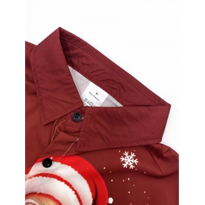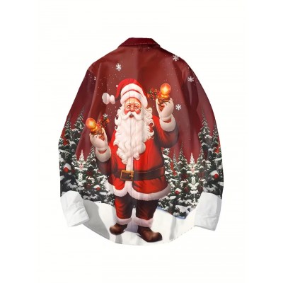 [Рождественская футболка с принтом Санты] Футболка с длинным рукавом с рождественским принтом Санты - 100% полиэстер, обычная посадка, обычный воротник, детали с пуговицами, 120 г/кв.м - идеально для Хэллоуина, Дня благодарения, новогодних праздников