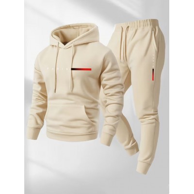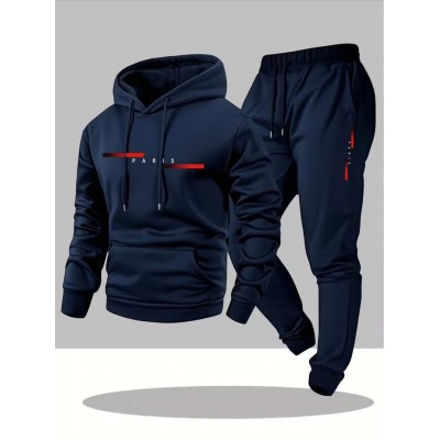 [Мужской комплект худи и спортивных штанов] 2 предмета, мужской комплект худи с парижскими мультяшными принтами и буквами и спортивных штанов | худи, свободная посадка, слегка тянущаяся ткань, с принтом для осени/зимы