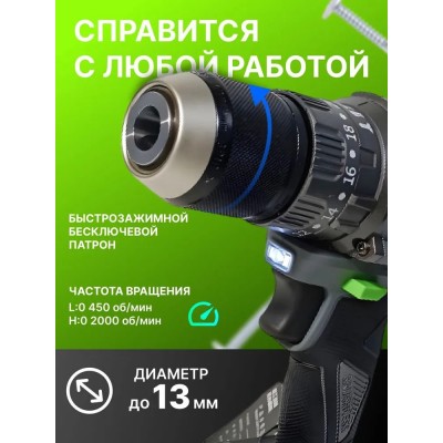 покрытие > бытовая техника > Шуруповерт аккумуляторный ударный бесщеточный 2 акб +кейс
