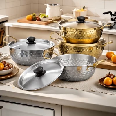 покрытие > Бытовая техника > [Набор посуды из нержавеющей стали] 3 предмета, набор посуды из нержавеющей стали | многофункциональные суповые кастрюли с двумя ручками с крышками, корейская горячая кастрюля, кастрюля для пасты и морепродуктов для индукционной плиты, кемпинга на открытом воздухе - безопасны для посудомоечной машины, нержавеющая сталь 304