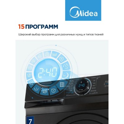 покрытие > Бытовая техника > Стиральная машина узкая Midea MF100W70/S-RU, 40 см, 7 кг, 15 программ, 1200 об/мин, отложенный старт, черный