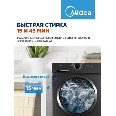 Стиральная машина узкая Midea MF100W70/S-RU, 40 см, 7 кг, 15 программ, 1200 об/мин, отложенный старт, черный